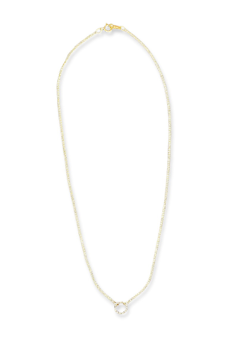 Transform your look with this handcrafted necklace, showcasing a luminous gold filled 42cm link chain complemented by a round twisted connector. This distinctive piece perfectly balances classic and contemporary, offering a stunningTwisted connector necklace addition to your jewelry collection.