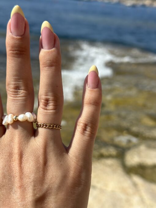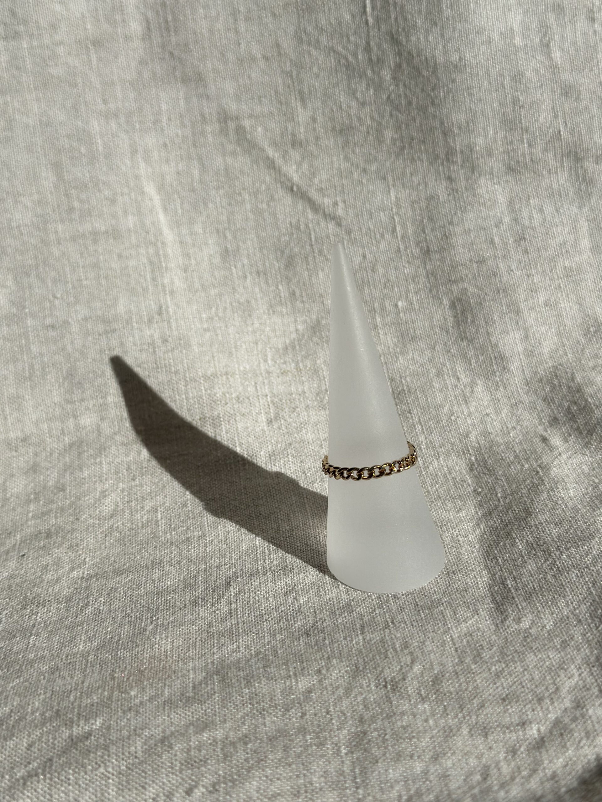 Discover the unique charm of this 14K gold filled ring crafted from flexible chain links. This distinctive design offers both elegance and comfort, with its adjustable fit and stylish look. Perfect for everyday wear or layering with other rings, this piece adds a modern, handcrafted touch to any jewelry collection. Ringsize only available in 17,7 (55,3 mm).